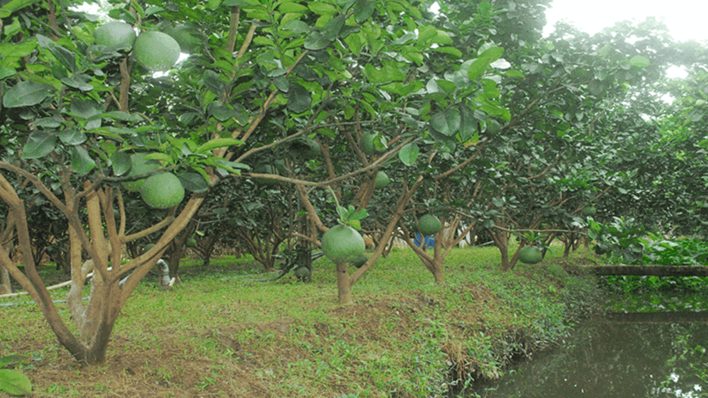 | À Binh Ninh, la plantation de pamplemoussiers se généralise, marquant le paysage agricole de ces dernières années. |