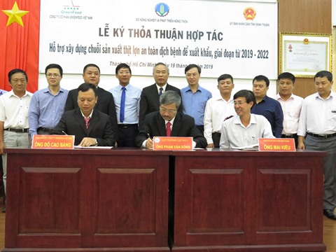 Dô Cao Bang, directeur général de la société par actions GreenFeed Vietnam, a indiqué que les parties sont en train de créer une base de données pour atteindre leurs objectifs. Avec GreenFeed, le processus de construction d'une chaîne de production de viande de porc exempte de maladie, conformément à l'OIE, devrait commencer à partir de juin 2019, à travers l'évaluation des conditions de l'usine de production d'aliments pour animaux et l’examen de producteurs de variétés génétiques afin d’assurer la sécurité biologique, contrôler les maladies, la surveillance de l’application de procédures de biosécurité, de la construction de nouvelles installations d'élevage de porcs, ainsi que de la gestion des phases d’organisation de formations pour les employés travaillant directement dans les zones envisagées.
