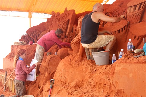 | Les artistes travaillent au parc de sculptures sur sable à Binh Thuân. |