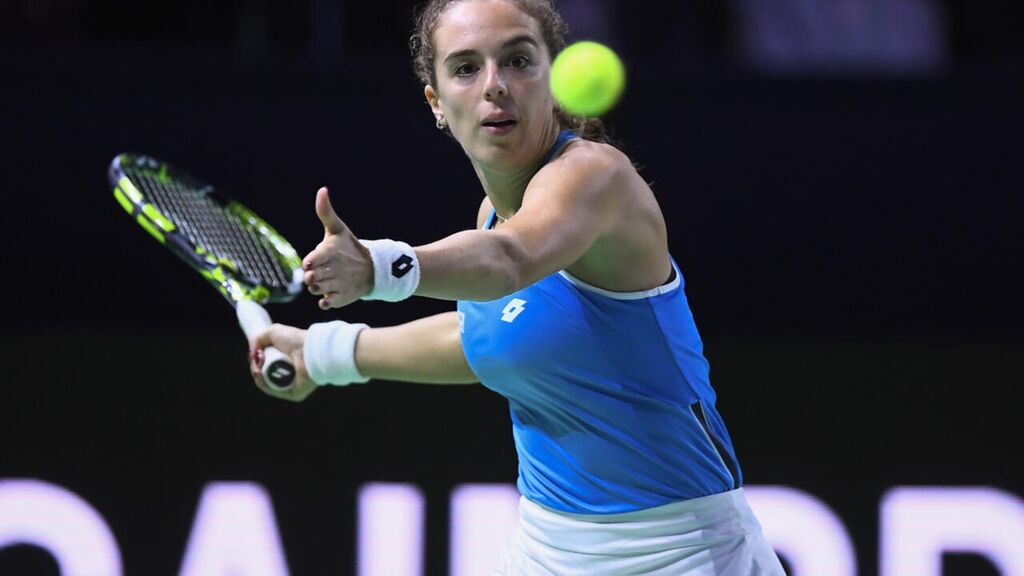 | L'Italienne Lucia Bronzetti lors de sa victoire face à la Slovaque Viktoria Hruncakova lors du premier match de la finale de la BJK Cup, le 20 novembre à Malaga. |