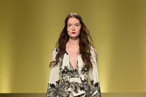 Pandémie de coronavirus oblige, le tournage du défilé auquel l'AFP a assisté s'est fait à huis clos, dans les somptueux locaux du Cercle Philologique à Milan, à deux pas de la Scala. Le fashion show a été retransmis mercredi matin en streaming.