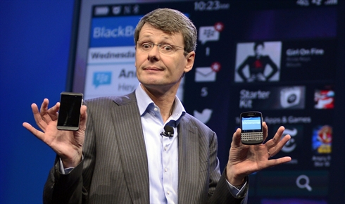 | Le PDG de BlackBerry, Thorsten Heins, dévoile officiellement le portable BlackBerry 10, en janvier à New York. |