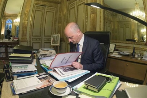 | Le ministre de l'Éducation nationale Jean-Michel Blanquer étudie un dossier sur le Baccalauréat dans son bureau à Paris, le 18 janvier. |