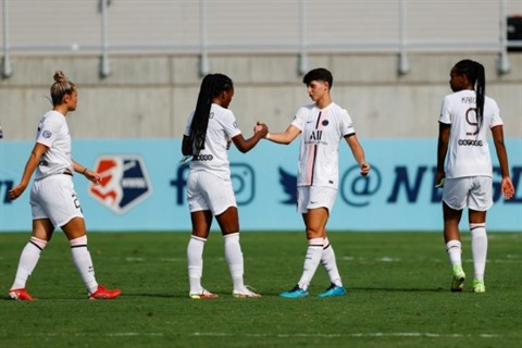 | Les Parisiennes Grace Geyoro, Élisa de Almeida (centre) et Marie Antoinette Katoto à l'issue du match contre Chicago à Louisville le 21 août, retrouvent les Bleues. |