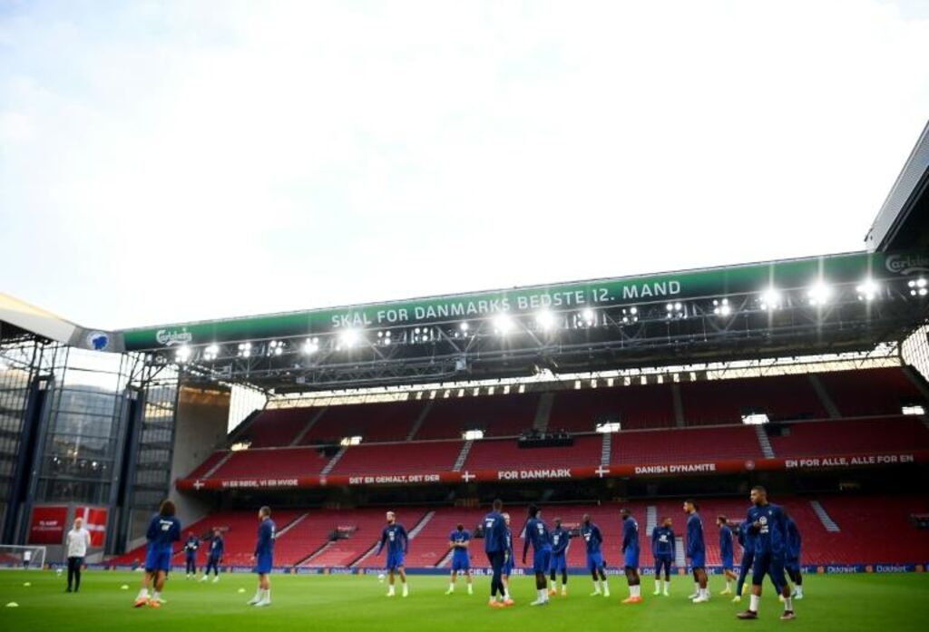 | L'entraîenement de l'équipe de France, la veille de son match contre le Danemark lors de la dernière journée de la Ligue des nations au Parken Stadium à Copenhague, le 24 septembre 2022. |