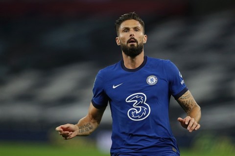 | Olivier Giroud avec Chelsea contre Tottenham en Coupe de la Ligue anglaise à Londres, le 29 septembre. |