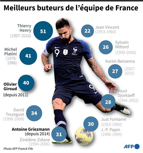 "Ce qui est important pour le buteur, ce n'est pas de rentrer dans les statistiques, c'est de faire gagner son équipe", relève l'ancien Ballon d'Or auprès de l'AFP, évacuant le bruit de fond qui a toujours accompagné la carrière de Giroud.