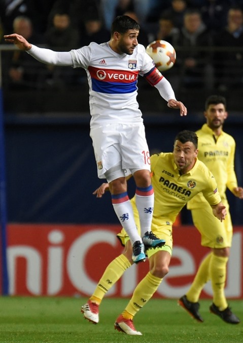 | Le milieu offensif lyonnais Nabil Fekir (gauche) pendant le match retour d'Europa League entre le Villarreal CF et l'OL, à Vila-Real le 22 février. |
