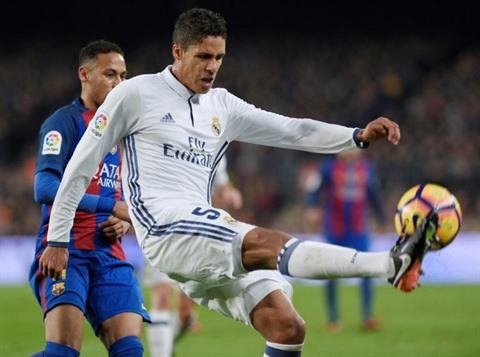 | Raphaël Varane, le 3 décembre 2016 au Camp Nou lors du Clasico Barça-Real Madrid. |