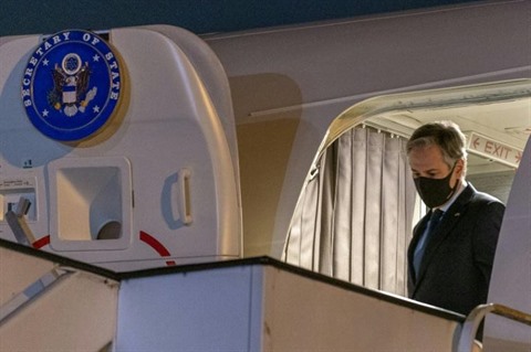 | Le secrétaire d'État américain, Antony Blinken, arrive à Nairobi, le 17 novembre. |