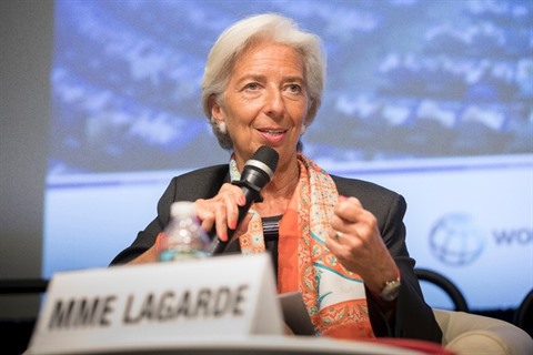 | Christine Lagarde, directrice du FMI lors de l'assemblée de printemps de son institution et de la Banque mondiale. |