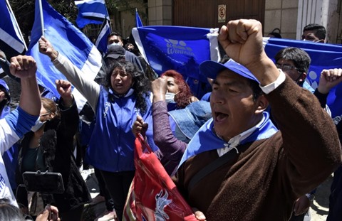 | Des supporters du candidat victorieux à la présidence de la Bolivie Luis Arce à La Paz, le 19 octobre. |