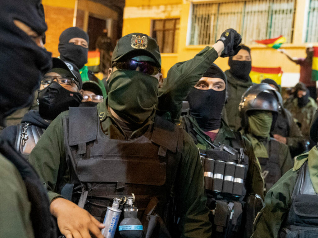 | Des policiers boliviens dans un quartier de Cochabamba, le 8 novembre 2019. |