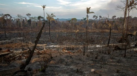 | Un secteur de la forêt amazonienne dévasté par le feu près de Novo Progresso, dans l'État brésilien de Para, le 25 août. |