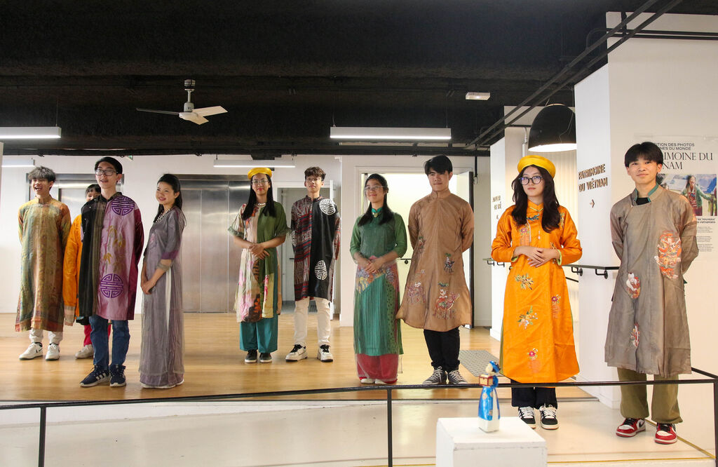| La collection d’áo dài "Dong chay" (tuniques traditionnelles du Vietnam) de la créatrice Ella Phan a séduit le public français. |