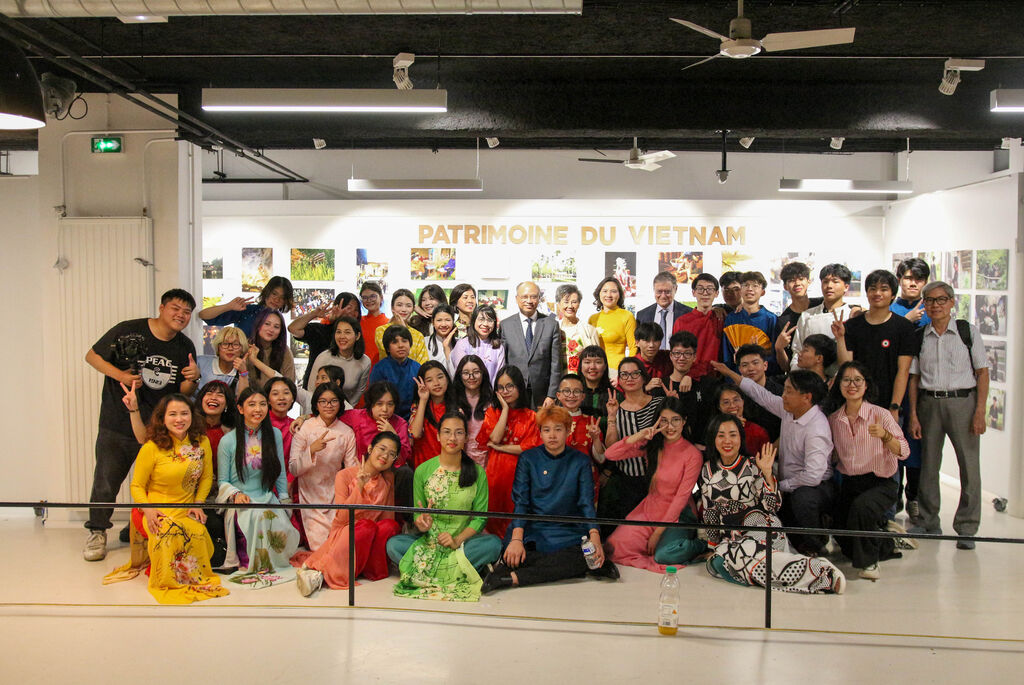| Dinh Toàn Thang, ambassadeur du Vietnam en France, et Nguyên Thi Vân Anh, représentante permanente du Vietnam auprès de l’UNESCO, prennent une pause avec les étudiants vietnamiens et ceux d'origine vietnamienne du monde entier participant à l’événement "Bonjour Vietnam". |