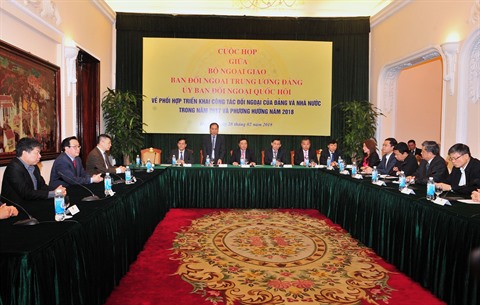 S’exprimant à cette occasion, le vice-Premier ministre et ministre des Affaires étrangères Pham Binh Minh a hautement estimé les contributions et la coordination efficace entre ces trois organes, tout en soulignant la poursuite des activités de relations extérieures en 2018, parallèlement à l’approfondissement des relations avec les pays, à l’intégration internationale profonde, à l’attraction des ressources pour le développement du pays et au rehaussement de la position du pays lors des forums régionaux et internationaux.