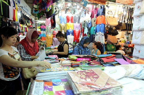 | Des touristes étrangers au marché de Bên Thành (Hô Chi Minh-Ville) |