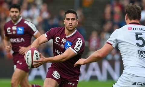 | L'ouvreur néo-zélandais de Bordeaux-Bègles Ben Botica (c) contre Lyon, le 15 février 2020 au stade Chaban-Delmas à Bordeaux. |