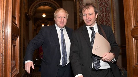 | Le ministre britannique des Affaires étrangères, Boris Johnson (gauche), et Richard Ratcliffe, le mari de l'Irano-Britannique Nazanin Zaghari-Ratcliffe détenue en Iran, le 15 novembre 2017 à Londres. |
