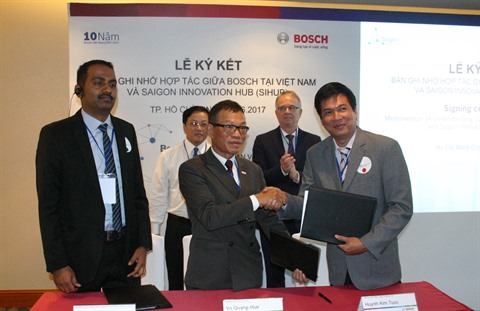 VinGroup et Bosch ont signé, le 12 octobre à Hanoï, un protocole d'accord qui notait les engagements du groupe allemand de fournir à son partenaire vietnamien des pièces et des logiciels automobiles et d'autres logiciels pour le design, l'interaction virtuelle et le développement de la clientèle.