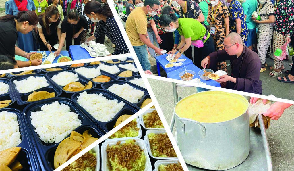 | Le vénérable Thich Quang Tinh et des bénévoles de la cuisine caritative de la pagode Phuc Long distribuent des repas gratuits à l’Institut central d’hématologie et de transfusion sanguine à Hanoï. |
