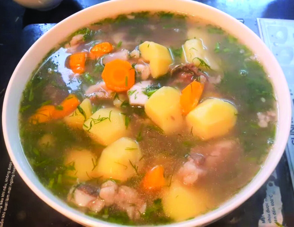 Le bouillon épouse la douceur fondante de la pomme de terre, le goût légèrement sucré de la carotte et la note herbacée vivifiante de l’aneth. Plat idéal pour les saisons froides, cette spécialité combine une haute valeur nutritionnelle à une authenticité de saveur, s’imposant comme un mets incontournable des tablées vietnamiennes.
