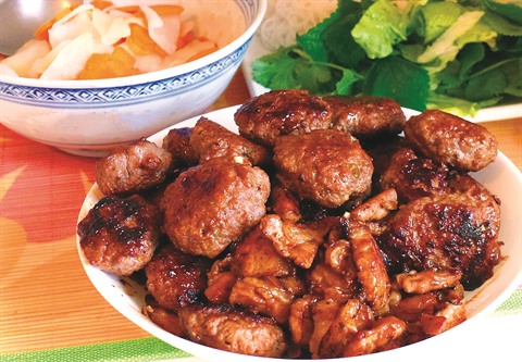 Comment manger : chaque convive place, dans une galette trempée, de la salade, des herbes, du vermicelle, une boulette découpée en deux ou entière, des carottes, oignons verts. Puis faire un rouleau que l’on trempera dans sa coupelle de sauce, tout cela à la main !