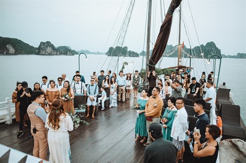 | Un mariage sur navire dans la baie de Ha Long, organisé par Bouquet & Buttonhole. |