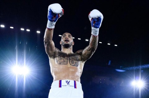 | Le champion olympique Tony Yoka lors de son dernier combat chez les lourds contre le Croate Petar Milas à Paris, le 10 septembre 2021. |