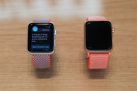 | La montre connectée Apple Watch Series 3, photographiée le 22 septembre à New York. |