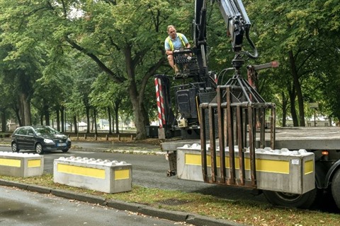 | Pose de blocs de béton pour empêcher les tentatives terroristes à Lille, le 30 août. |