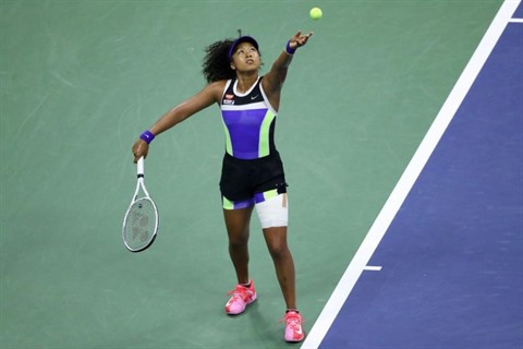 | La Japonaise Naomi Osaka au service, le 8 septembre à New York. |