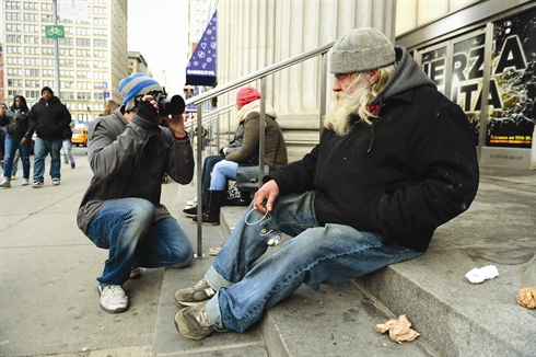 Chaque jour, cet ancien financier de 27 ans au visage d’enfant déambule, appareil photo en main, dans les rues new-yorkaises à la recherche de personnes hautes en couleur : de Harlem à Brooklyn en passant par Manhattan ou le Bronx, «je pars à la chasse au trésor», explique t-il. En deux ans, il a déjà photographié 5.000 New-Yorkais, enfants sortant de l’école, clochards, fashionistas, New-Yorkais avec un bouquet de tulipes, vieille dame avec sa canne, employés municipaux... Et près de 560.000 fans suivent désormais sa page Facebook.