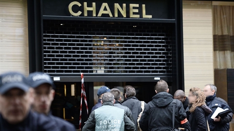 | La police mène des investigations après le braquage d'une boutique de bijoux Chanel à Paris, le 19 mai. |