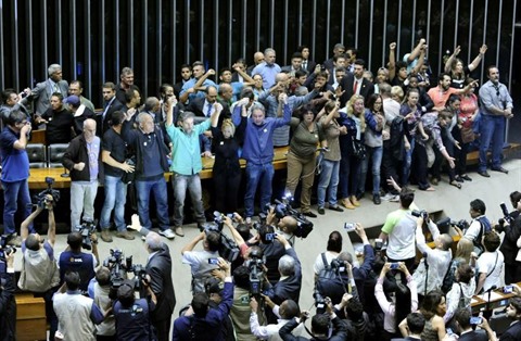 Tous les manifestants ont été interpellés pour être interrogés par la police du Parlement. Des images à la télévision montraient les manifestants exaltés en train de chanter l'hymne national et de lancer des appels contre la corruption. Selon le site d'informations G1, ils ont présenté une liste de revendications, dénonçant également communisme et socialisme.