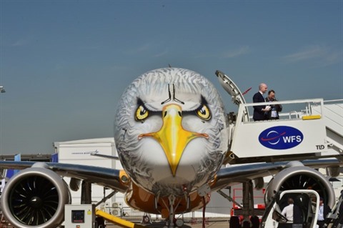 | Un appareil Embraer E195-E2 au Bourget le 20 juin 2017. |