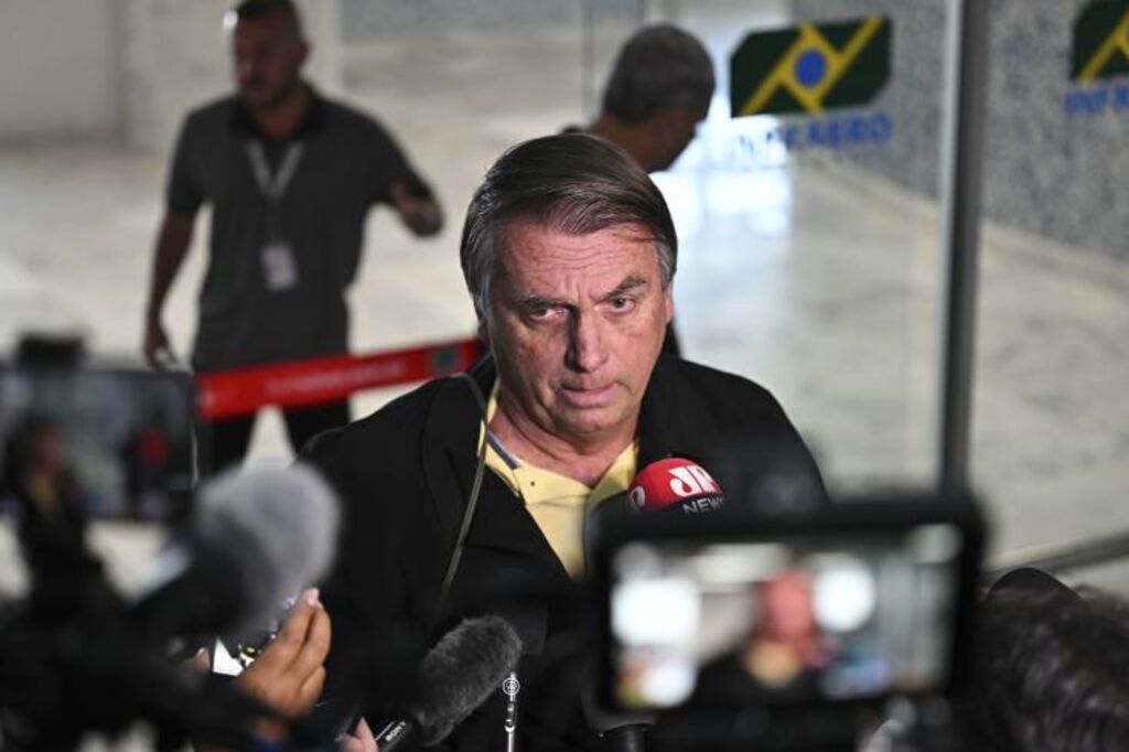 | L'ex-président du Brésil, Jair Bolsonaro, s'adresse à la presse à l'aéroport Santos Dumont de Rio, le 29 juin. |