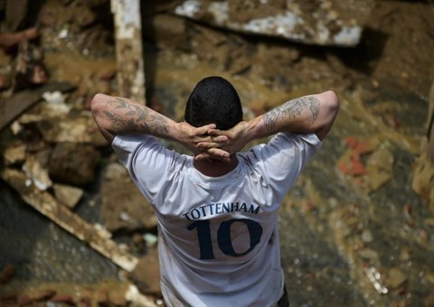| Un homme regarde la zone du glissement de terrain à Petropolis, au Brésil, le 16 février. |
