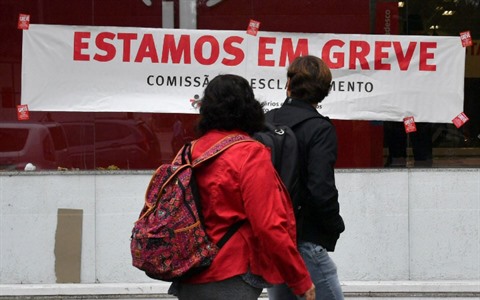 | La façade d'une banque en grève à Sao Paolo au Brésil. |