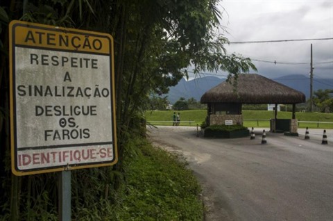 | L'entrée principale de Porto Bello où le Brésilien Neymar possède une villa luxueuse, à Mangaratiba, à 130 km de Rio de Janeiro, le 4 mars 2018. |