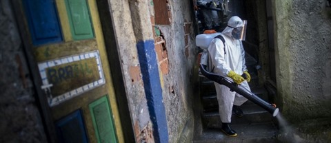| Désinfection d'une venelle dans la favela de Santa Marta à Rio de Janeiro (Brésil), le 20 avril. |