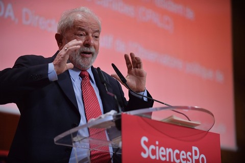 | L'ancien président brésilien Lula, probable futur candidat à l'élection présidentielle en 2022, donne un discours à l'Institut d'études politiques à Paris le 16 novembre. |