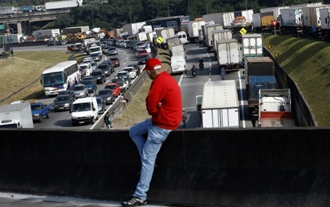 | Grève nationale des camionneurs sur la route Regis Bittencourt à 30 km de São Paulo et lancée en protestation contre la hausse des prix du diesel, le 24 mai. |
