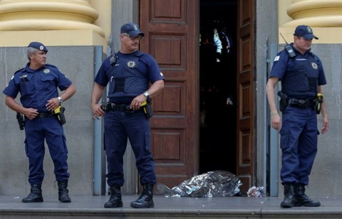 Les images de la télévision Globonews ont montré le cadavre du tireur à l'intérieur de la cathédrale, vêtu d'un jeans et d'un t-shirt bleu, un pistolet à la main et un autre à la ceinture.