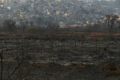 | Vue du parc naturel de Juquery à Franco de Rocha (Brésil), ravagé par un incendie, le 24 août. |