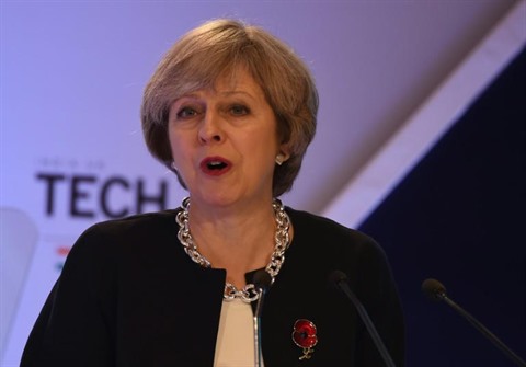 | La Première ministre britannique, Theresa May, le 7 novembre à New Delhi, lors d'une visite en Inde. |