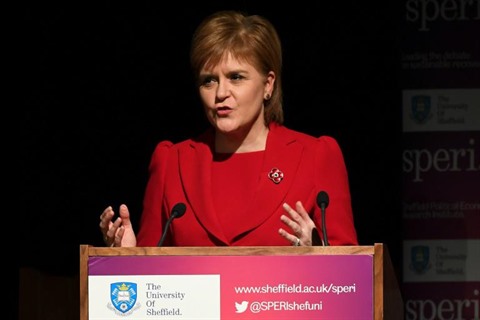 | La Première ministre écossaise, Nicola Sturgeon, à Sheffield, le 7 novembre |
