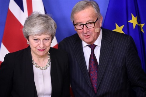 | La Première ministre britannique Theresa May et le président de la Commission européenne Jean-Claude Juncker, le 20 février à Bruxelles. |