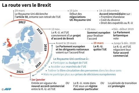 De leur côté, les 27 ont apporté lundi 19 novembre leur soutien politique à ce texte, qui prévoit notamment le solde de tout compte financier que devra verser le Royaume-Uni à l'UE. Il contient aussi une solution controversée pour éviter le retour d'une frontière physique entre l'Irlande et la province britannique d'Irlande du Nord, qui a longtemps été le principal point de blocage des négociations.